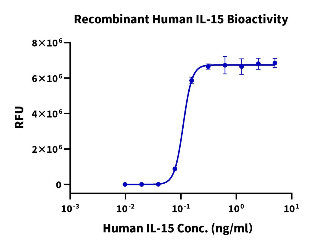 Human IL-15 bioactivity was measured in a cell proliferation assay using CTLL-2 cells. The ED50 was 0.1 - 0.3 ng/mL. The specific activity of recombinant human IL-15 is > 1 x 10⁷ units/mg, which is calibrated against the human IL-15 reference standard (NIBSC code: 95/554).