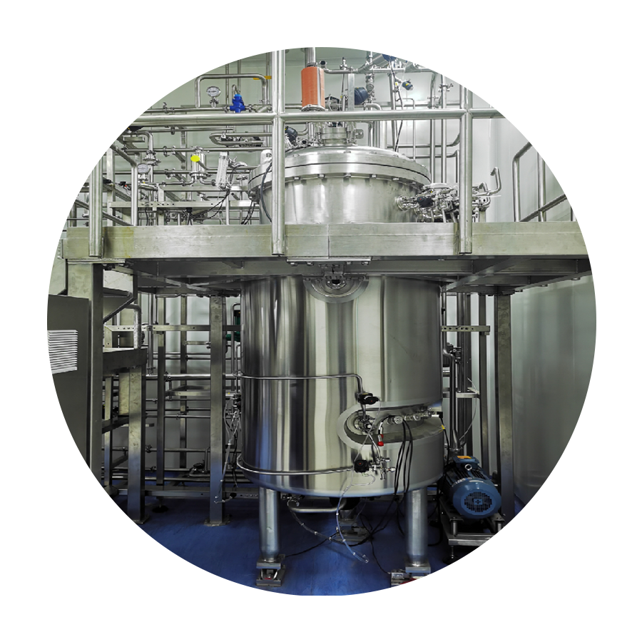 Our 10,000m² cGMP manufacturing facility boasts various fermentation tanks up to 1000L for long-term large-scale raw material supply.