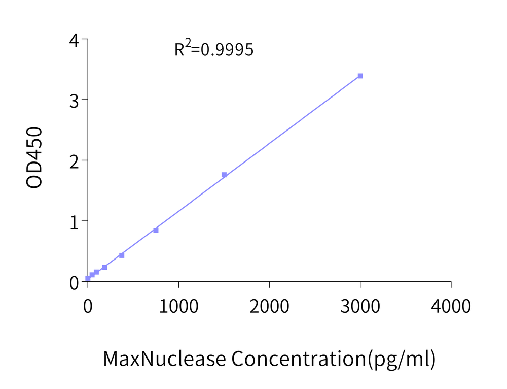 After nucleic acid removal using MaxNuclease™, the residual enzyme in the product or sample must be evaluated. For residual MaxNuclease™ detection, KACTUS has developed a highly sensitive and specific sandwich ELISA quantification kit, with a sensitivity of up to 23 pg/mL.