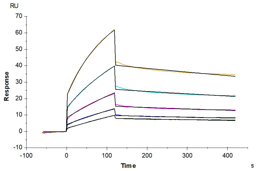 The protein has a predicted MW of 50.6 kDa. Due to glycosylation, the protein migrates to 55-65 kDa based on Bis-Tris PAGE result. |