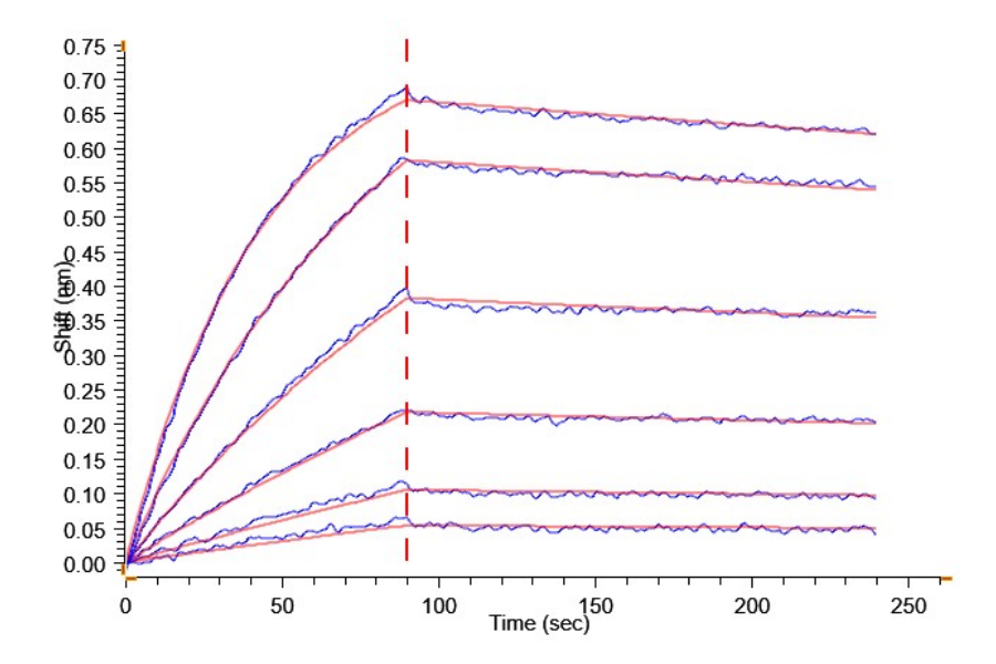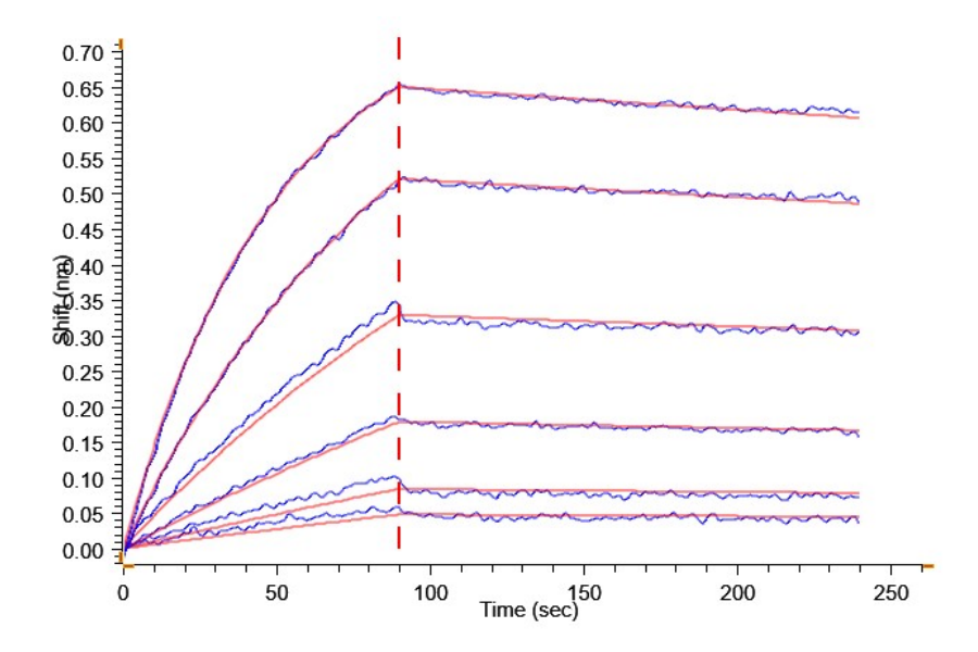 Immobilized Biotinylated Human CD19, His-Avi Tag at 2ug/ml (100ul/well) on the streptavidin precoated plate (5ug/ml). Dose response curve for Coltuximab, hFc Tag with the EC50 of 6.6ng/ml determined by ELISA (QC Test). The affinity constant of 0.64 nM as determined in SPR assay (Biacore T200). See testing image for detail. |