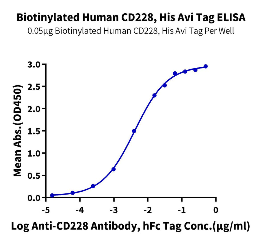 - Activity: Immobilized Biotinylated Human CD228, His Avi Tag at 0.5ug/ml (100ul/well) on the streptavidin precoated plate (5ug/ml). Dose response curve for Anti-CD228 Antibody, hFc Tag with the EC50 of 4.1ng/ml determined by ELISA.