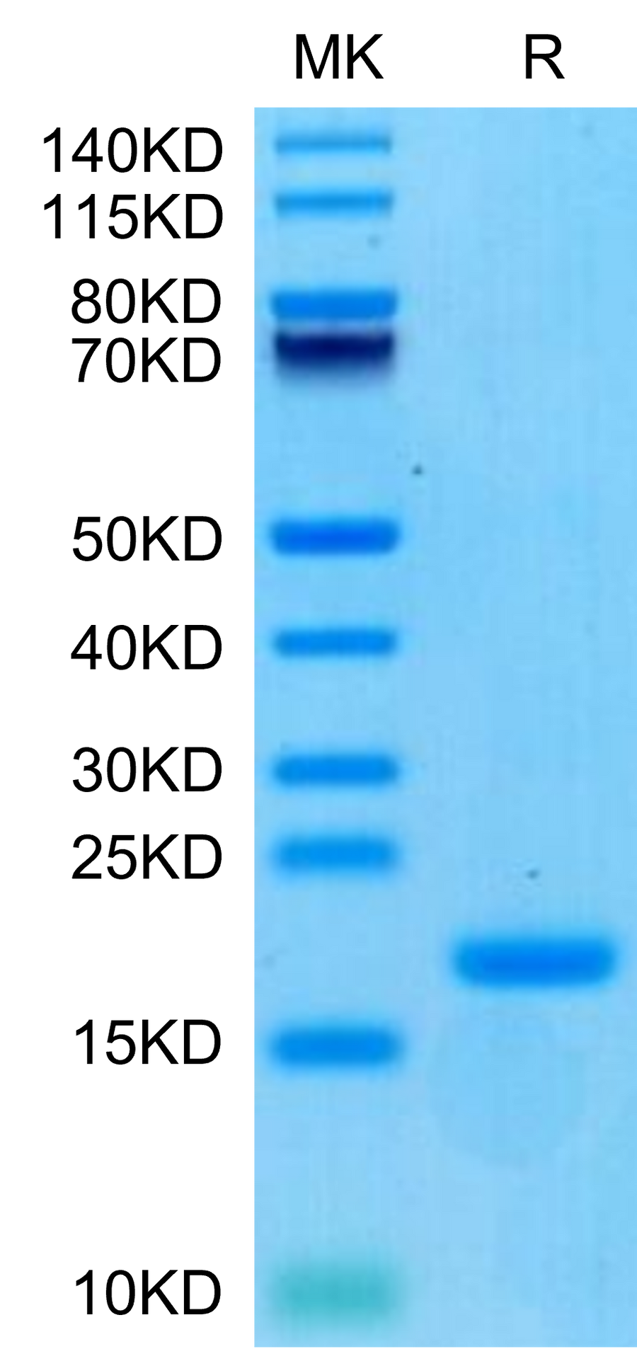 The protein has a predicted MW of 17.21 kDa. Due to glycosylation, the protein migrates to 18-20 kDa based on Bis-Tris PAGE result. |