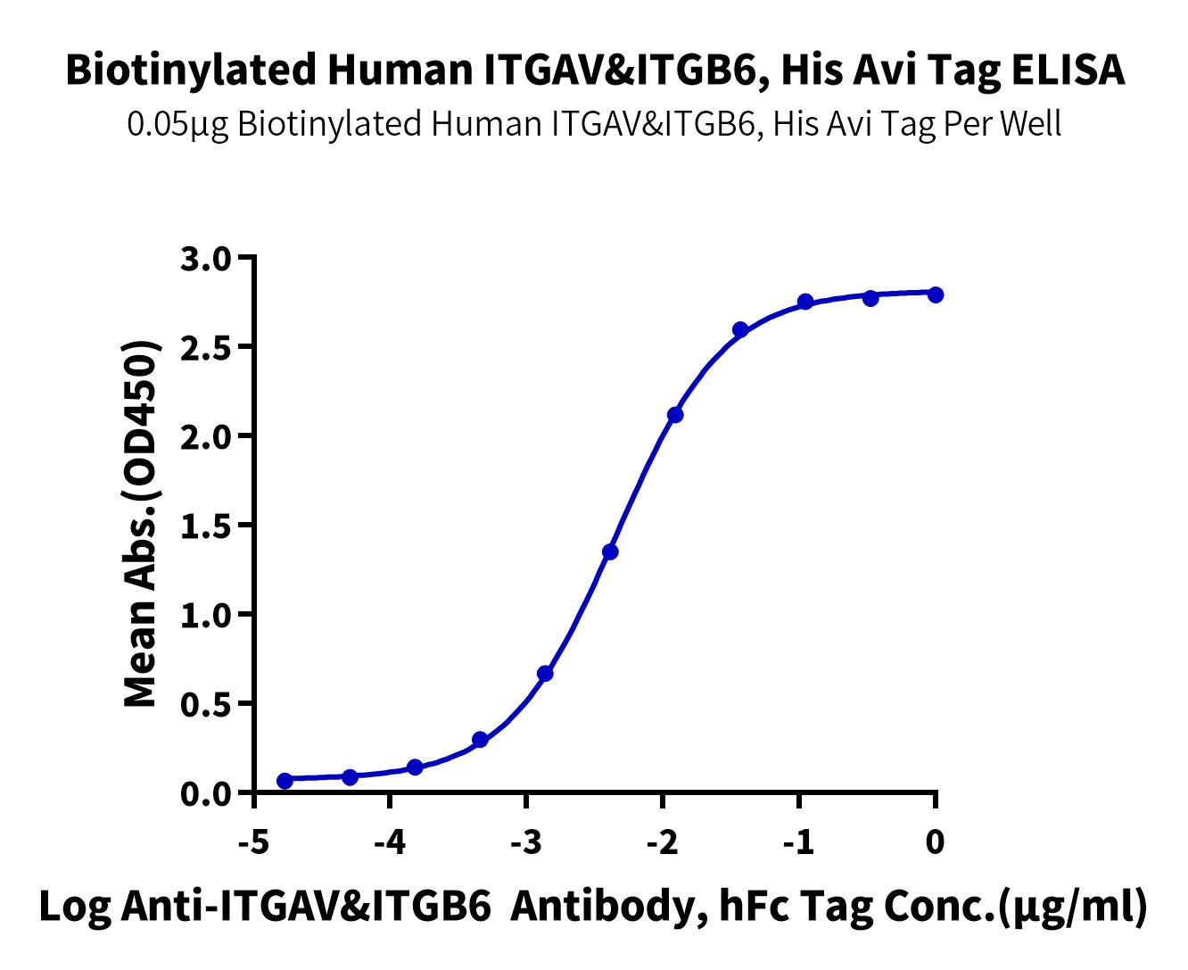 - Activity: Immobilized Human Latent TGF beta 1, His Tag at 2ug/ml (100ul/well) on the plate. Dose response curve for Biotinylated Human ITGAV&ITGB6, His Tag with the EC50 of 2.2ug/ml determined by ELISA (QC Test). See testing image for detail.