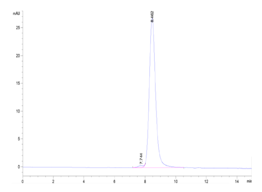 The protein has a predicted MW of 80.6 kDa. Due to glycosylation, the protein migrates to 90-110 kDa based on Bis-Tris PAGE result. |