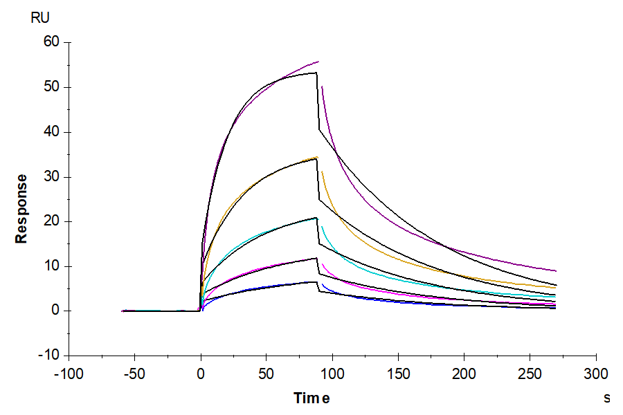 Immobilized Cynomolgus CCR8, mFc Tag at 1ug/ml (100ul/well) on the plate. Dose response curve for Anti-CCR8 Antibody, hFc Tag with the EC50 of 6.1ng/ml determined by ELISA. The affinity constant of 0.27 uM as determined in SPR assay (Biacore T200). |