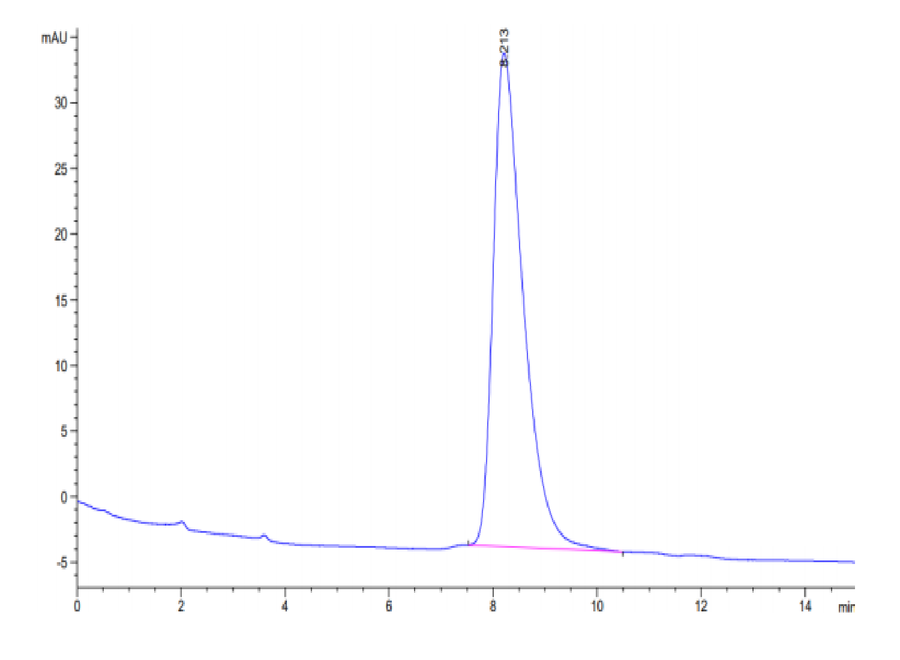 The protein has a predicted MW of 43.80 kDa. Due to glycosylation, the protein migrates to 60-70 kDa based on Bis-Tris PAGE result. |