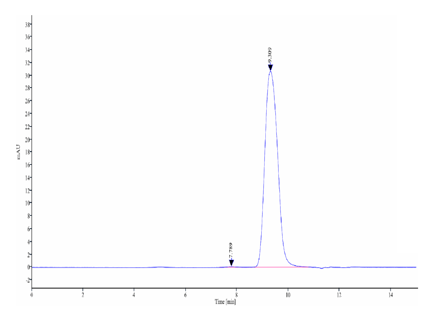 The protein has a predicted MW of 23.4 kDa. Due to glycosylation, the protein migrates to 45-60 kDa based on Bis-Tris PAGE result. |