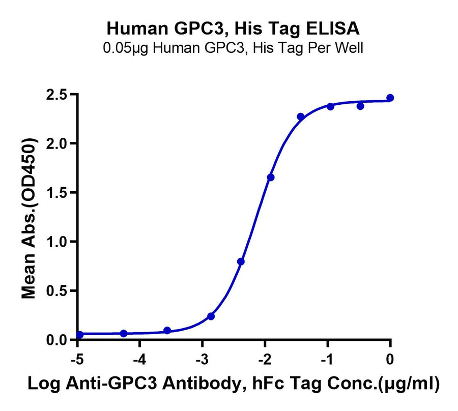 | Activity | Immobilized Human GPC3, His Tag at 1 ug/ml (100ul/Well). Dose response curve for Anti-GPC3 Antibody, hFc Tag with the EC50 of 4.3ng/ml determined by ELISA (QC Test). |