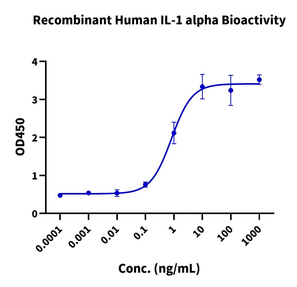 Recombinant Human IL-1 alpha/IL-1A Protein is expressed from E.coli without tag.It contains Ser113-Ala271. |