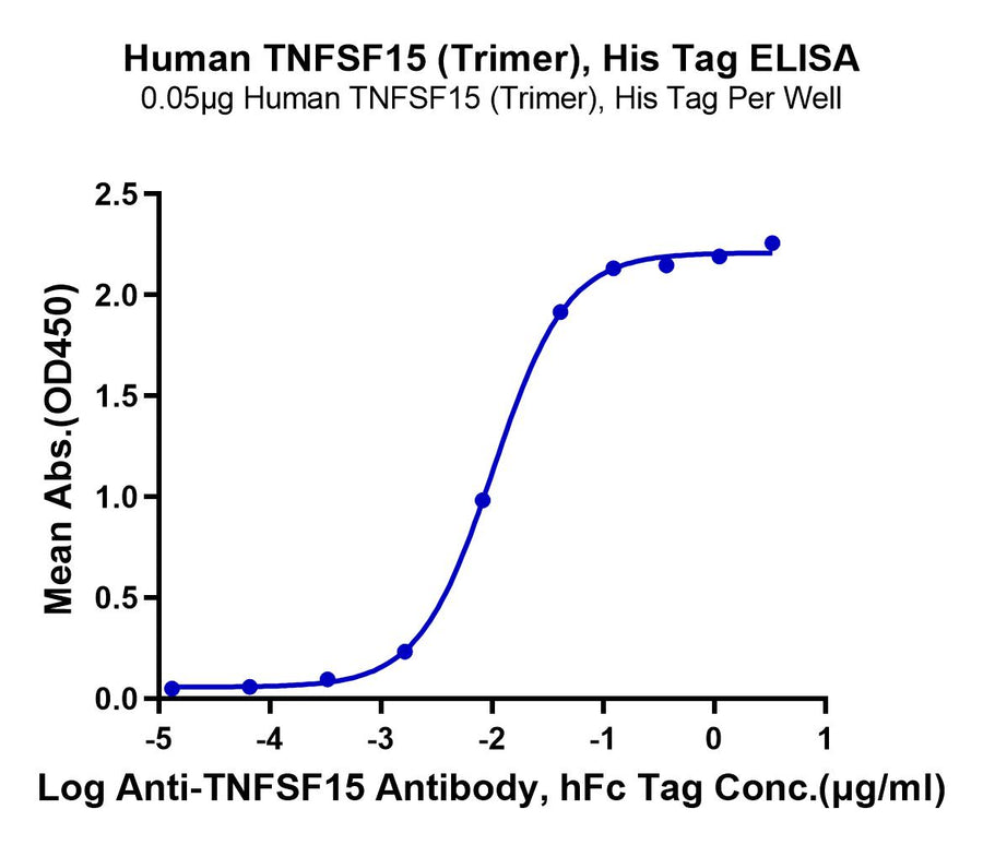 - Activity: Immobilized Human IL-12, His Tag at 1ug/ml (100ul/well) on the plate. Dose response curve for Anti-IL-12 Antibody, hFc Tag with the EC50 of 2.4ng/ml determined by ELISA (QC Test).