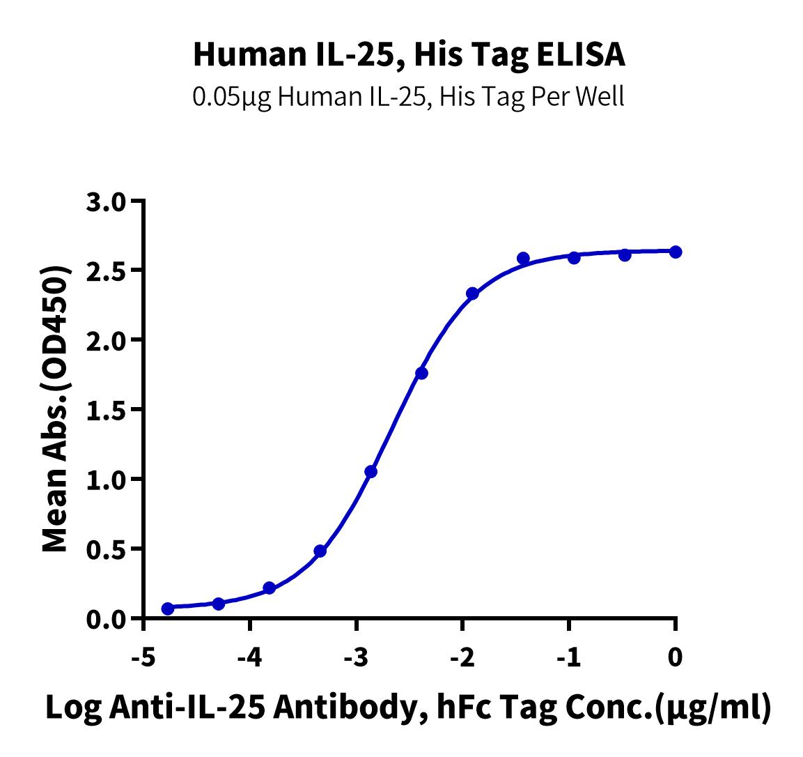 IL-25, also known as IL-17E, is a member of the IL-17 cytokine family mostly produced by epithelial cells and innate immune cells. After binding to the IL-17RB/IL-17RA complex, IL-25 induces downstream signaling responses in epithelial cells and type 2 lymphocytes, which initiates, propagates, and sustains type 2 immunity. The function of IL-25 in allergic diseases such as asthma has been well established, and now also is extended to diseases such as inflammatory bowel disease and cancer. |