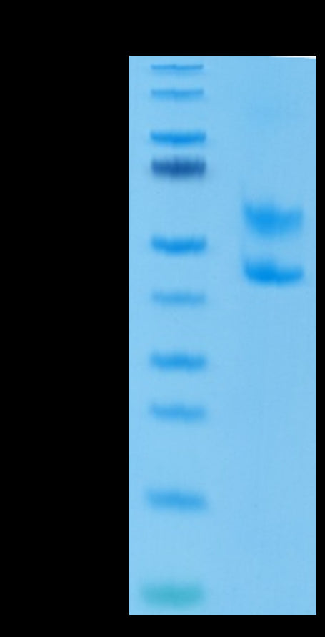 The protein has a predicted MW of 36.1 kDa (CD3E) and 35.2 kDa (CD3D). Due to glycosylation,the protein migrates to 50-65 kDa and 40-50 kDa based on Bis-Tris PAGE result. |