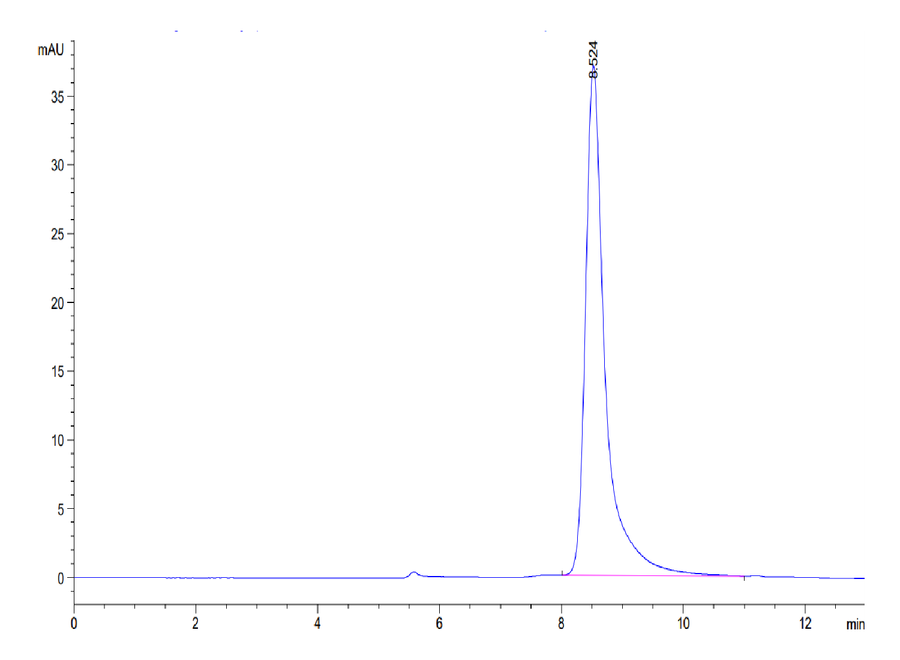 The protein has a predicted MW of 28.2 kDa. Due to glycosylation, the protein migrates to 30-40 kDa based on Bis-Tris PAGE result. |