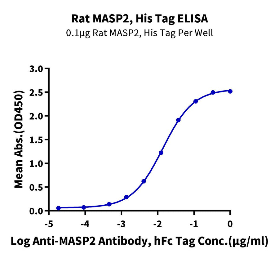 - Activity: Immobilized Rat MASP2, His Tag at 1ug/ml (100ul/well) on the plate. Dose response curve for Anti-MASP2 Antibody, hFc Tag with the EC50 of 13.9ng/ml determined by ELISA.