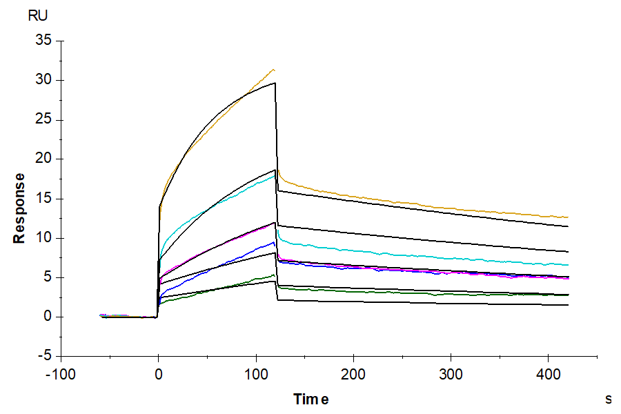 Immobilized Rhesus macaque HLA-G&B2M&Peptide (RIIPRHLQL) Monomer, His Tag at 5ug/ml (100ul/well) on the plate. Dose response curve for Rhesus macaque LILRB1, hFc Tag with the EC50 of 1.4ug/ml determined by ELISA (QC Test). The affinity constant of 27.18 nM as determined in SPR assay (Biacore T200). |